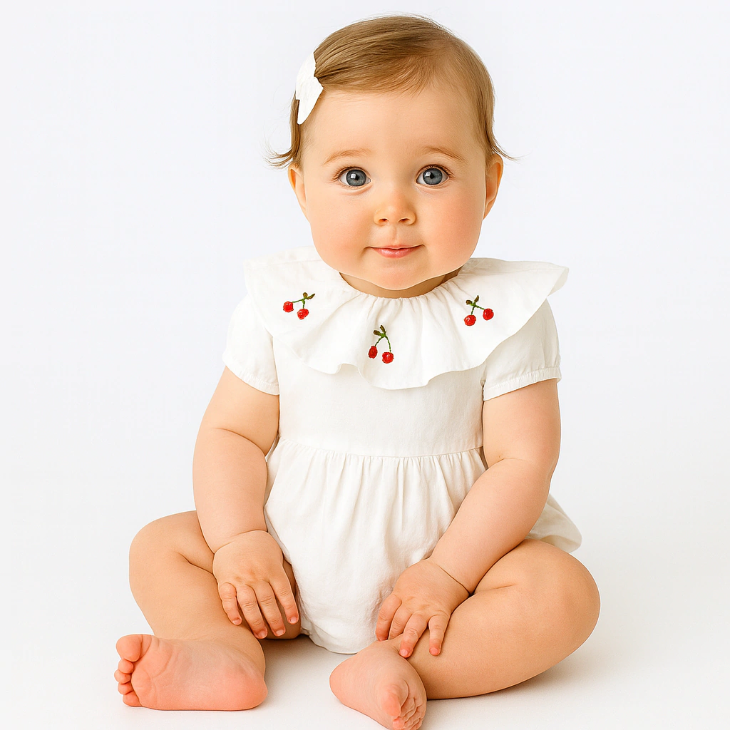 🌿El cuello con volado está bordado a mano con delicadas cerezas.