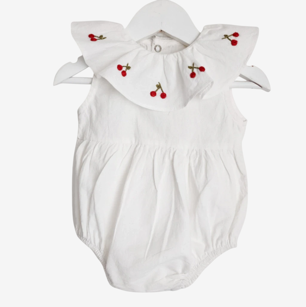 🌿El cuello con volado está bordado a mano con delicadas cerezas.