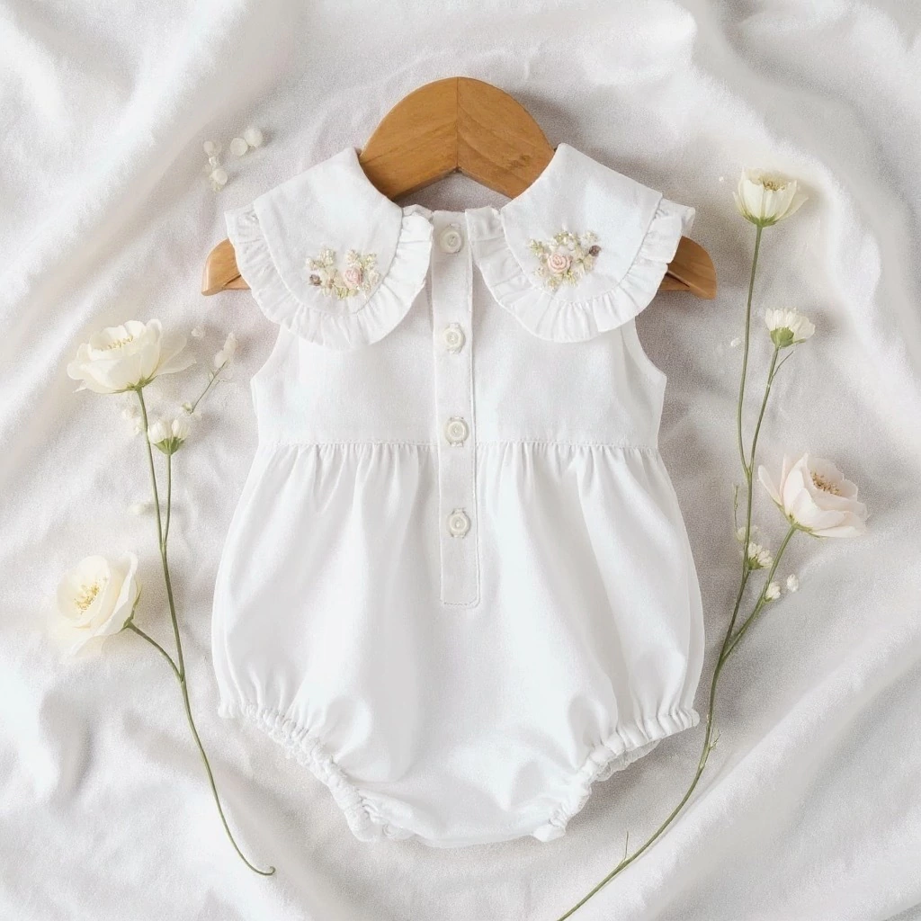 El cuello bordado a mano y los delicados bordados convierten cada bombachón en una prenda irrepetible.