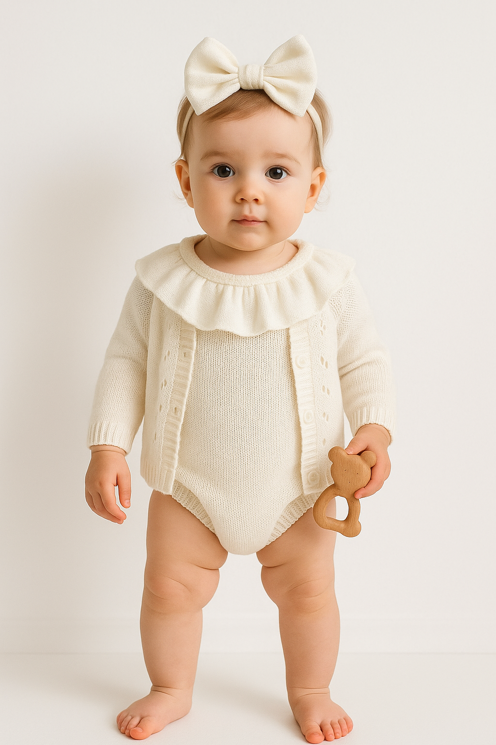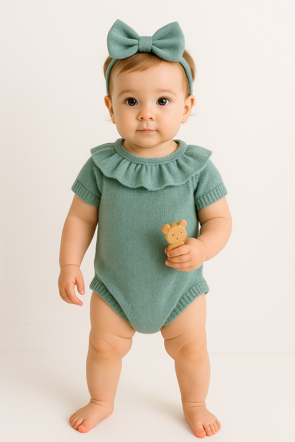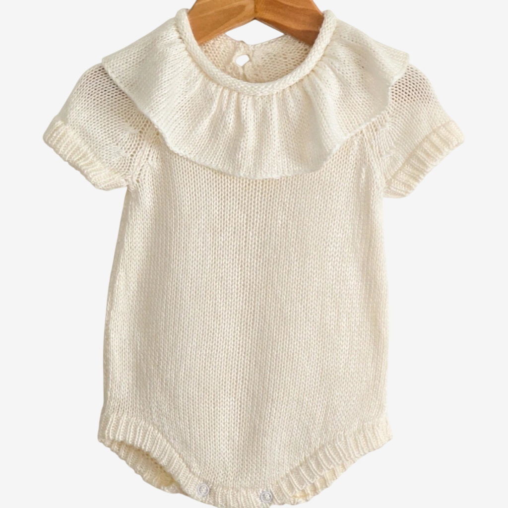 ✨Su volado en la parte delantera le da un aire romántico y atemporal, mientras que la abertura trasera permite vestir al bebé con facilidad y comodidad. Además, cuenta con broches en la entrepierna, ideales para cambios rápidos sin complicaciones.