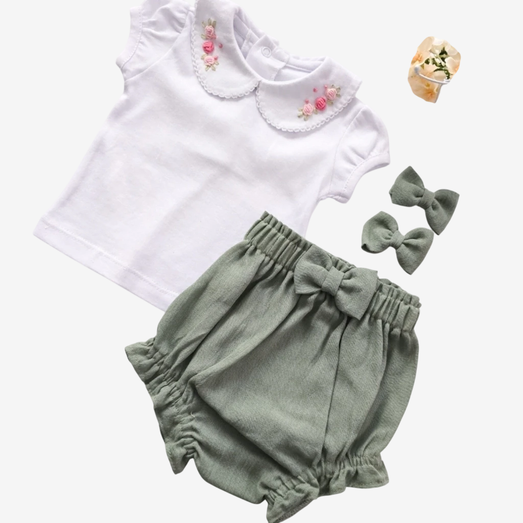 Un conjunto fresco, delicado y exclusivo, creado para que tu bebé luzca con comodidad y un estilo único en cada momento especial.