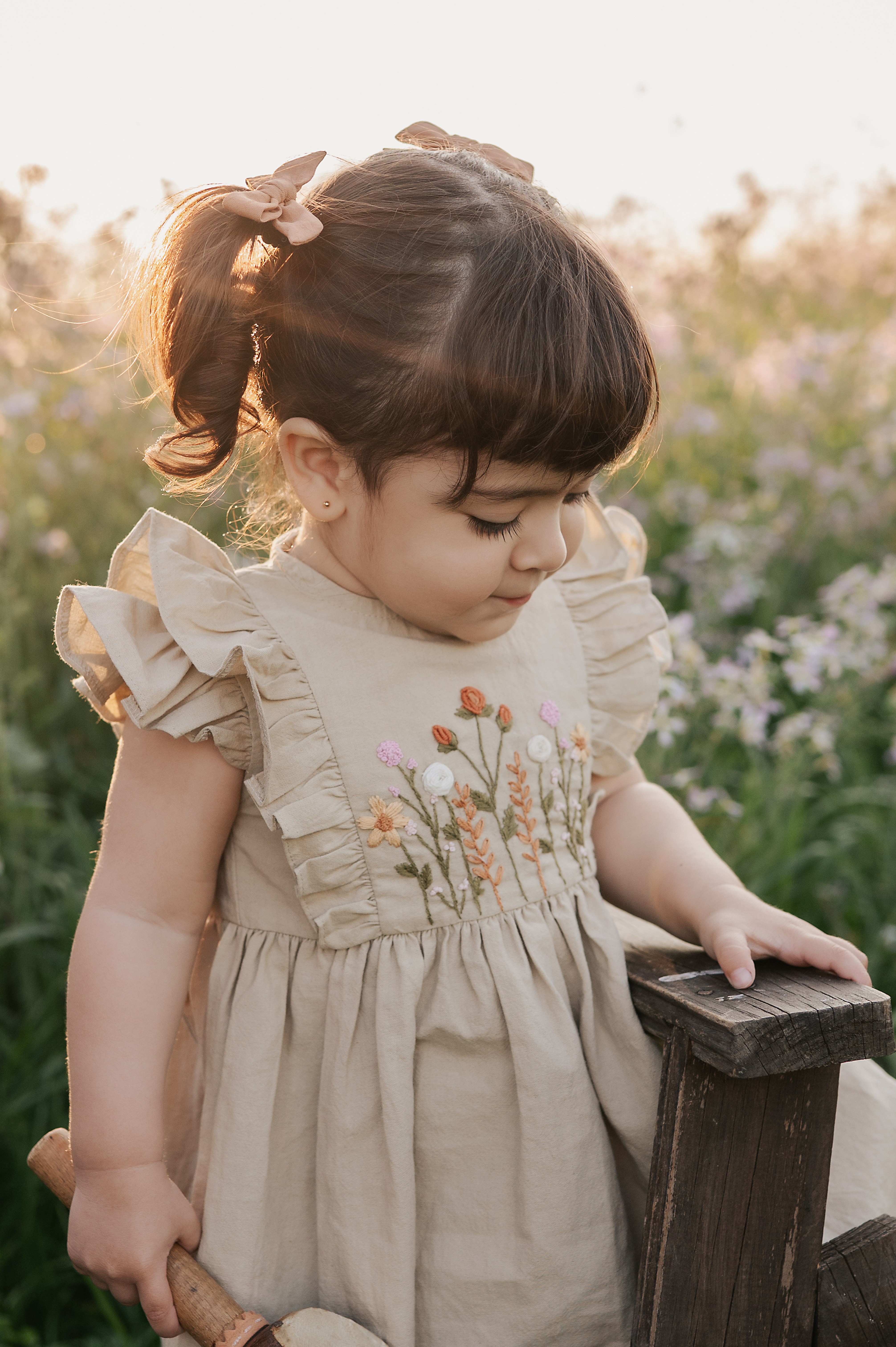 Un vestido que combina delicadeza artesanal y frescura natural. Confeccionado en tusor 100% algodón, una tela liviana y respirable ideal para pieles sensibles, está pensado para acompañar a tu pequeña con comodidad en cada movimiento.