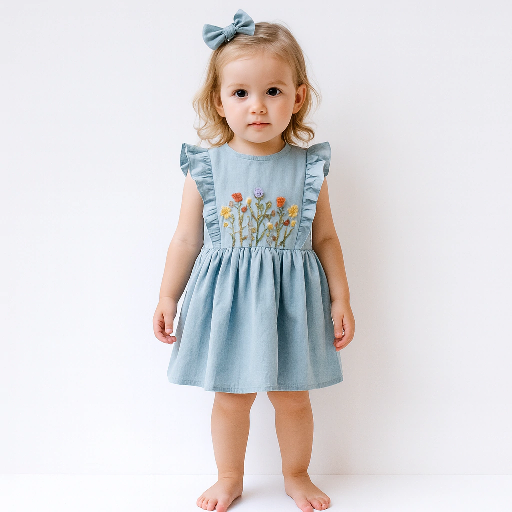 Un vestido que combina delicadeza artesanal y frescura natural. Confeccionado en tusor 100% algodón, una tela liviana y respirable ideal para pieles sensibles, está pensado para acompañar a tu pequeña con comodidad en cada movimiento.